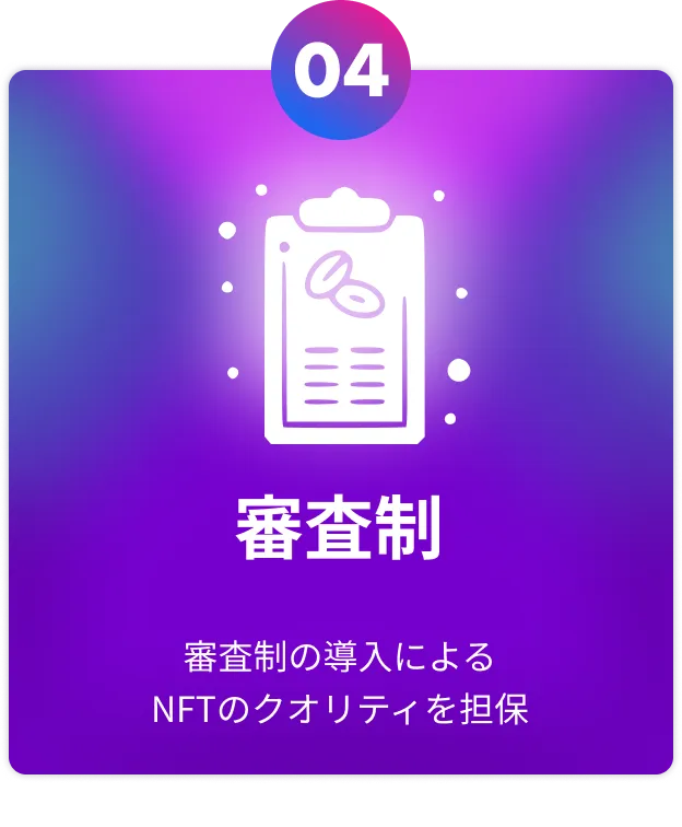 審査制を導入しているので、NFTを購入したことがない方でも安心してご購入いただけます。